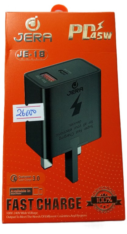 Jera JE-18 PD+QC 3.0 45W Fast Charger with type c to type C cable ( New Casing )