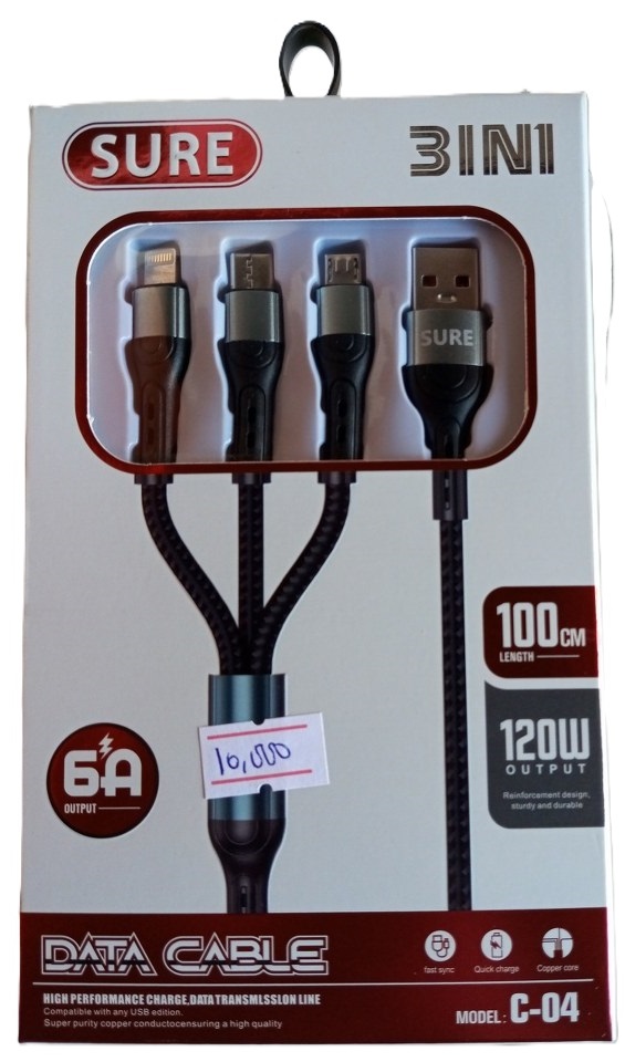 Sure Three in One Usb Data Cable ( New)