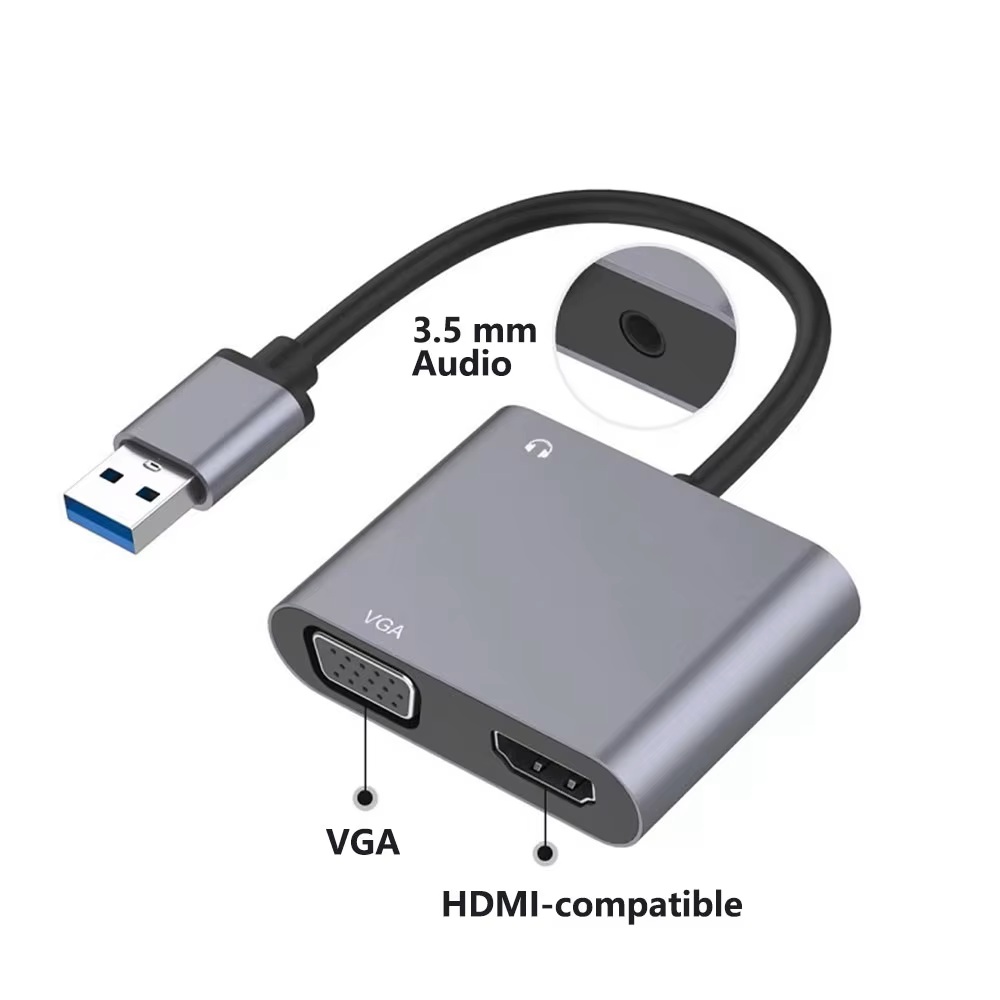 USB to HDMI-compatible VGA Adapter 1920*1080P Dual Output Multi-Display Converter For Mac OS Windows 7/8/10/11 Laptop Computer ( new)